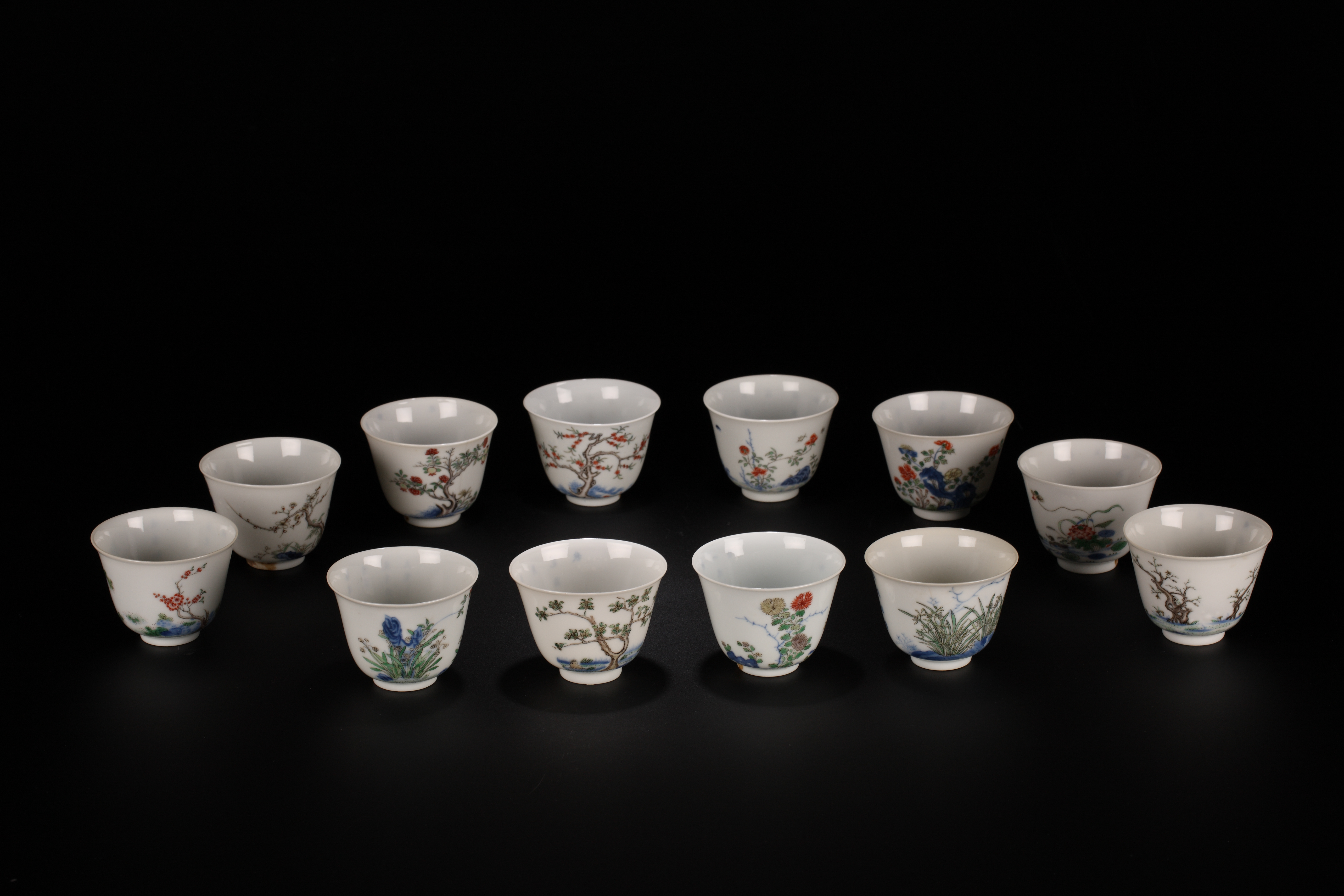 在广东省博物馆新展中,我们偶遇了TA们的原型——清康熙青花五彩十二月花卉杯。